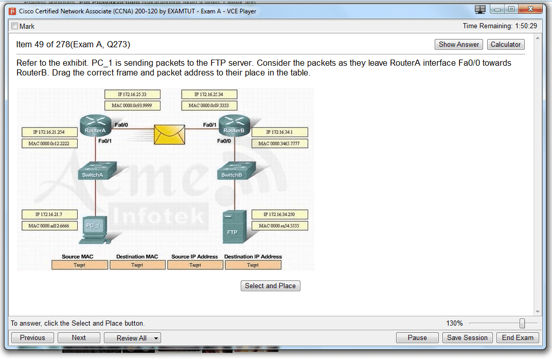 You can review your answers and see how well you did on your VCE practice exam by clicking on the Review menu below. You can also mark some questions (top left corner of the VCE Viewer window) and come back to them later:
